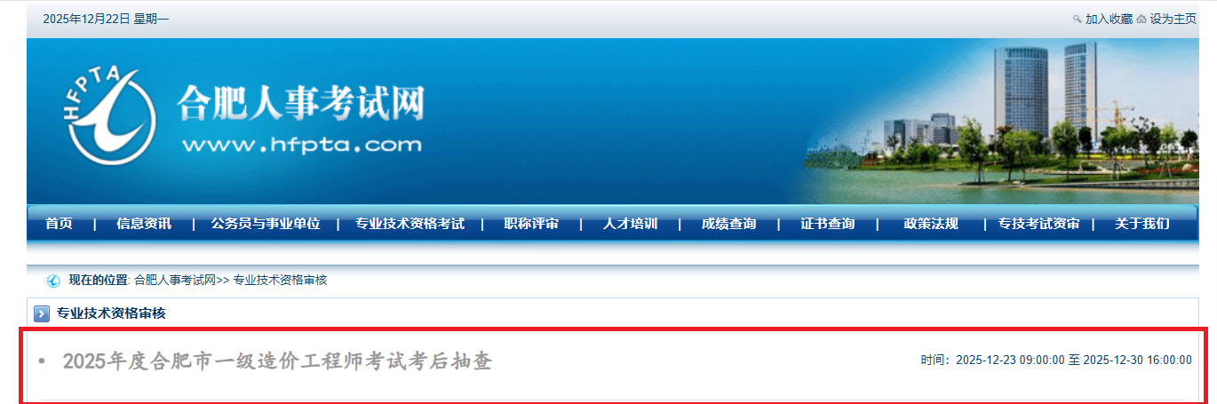 关于开展合肥考区2025年度一级造价工程师职业资格考试成绩合格人员践诺情况抽查工作的通知